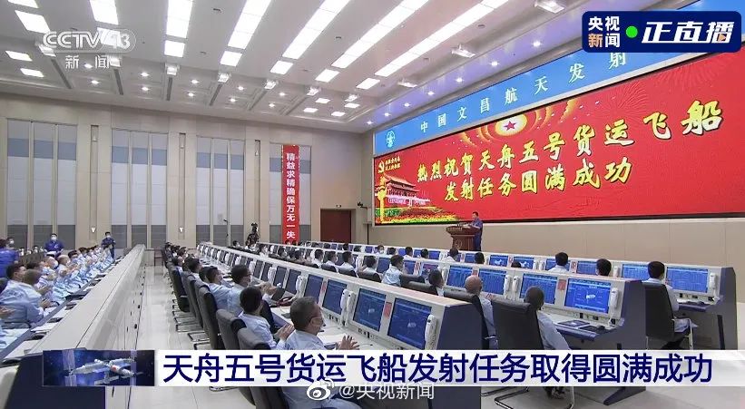 北京時間2022年11月12日10時03分,搭載天舟五號貨運飛船的長征七號遙六運載火箭,在我國文昌航天發(fā)射場點火發(fā)射,天舟五號貨運飛船與火箭成功分離并進入預定軌道,飛船太陽能帆板順利展開工作,發(fā)射取得圓滿成功。后續(xù),天舟五號貨運飛船將與在軌運行的空間站組合體進行自主快速交會對接。