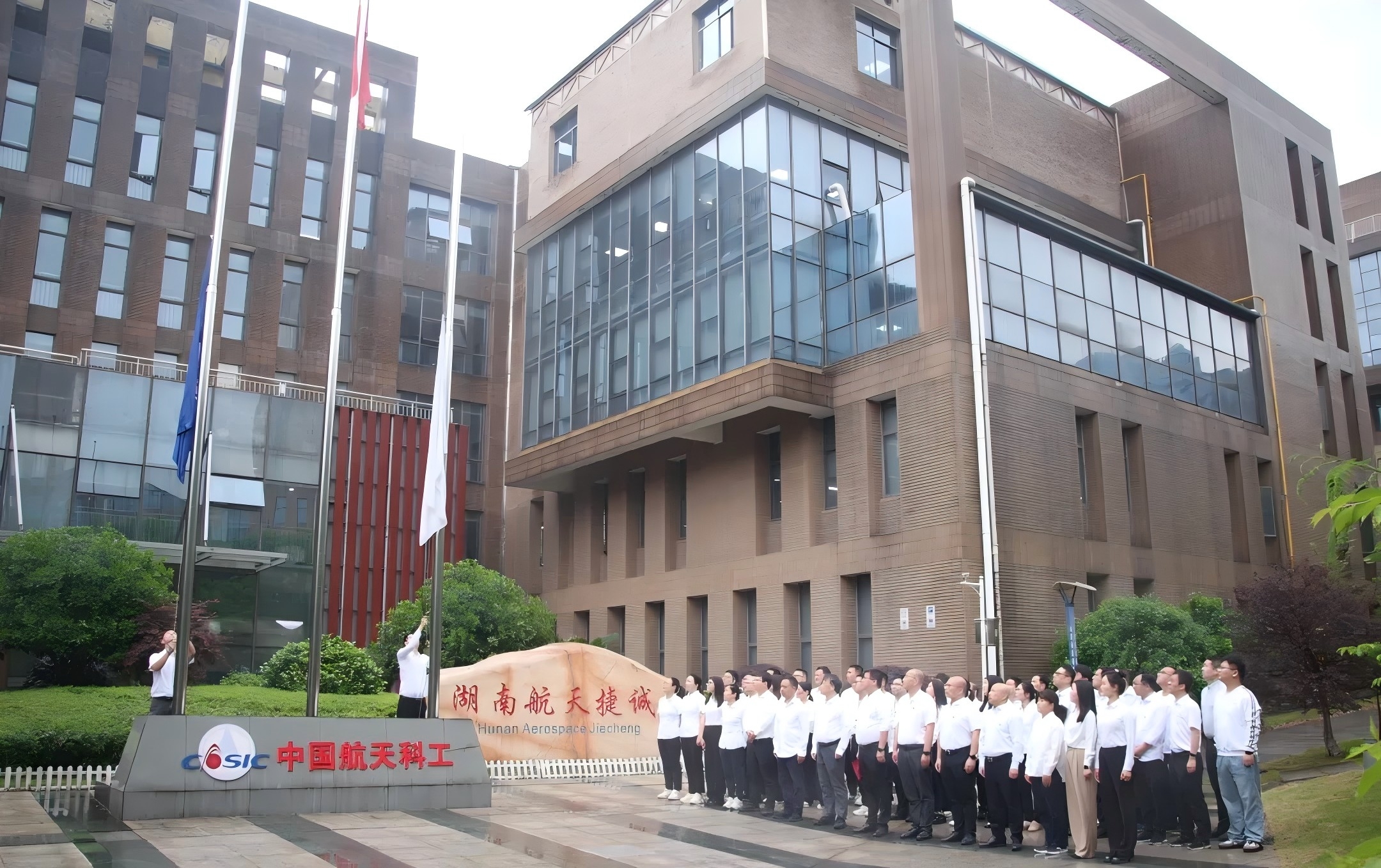 伴隨著雄壯的國歌,鮮艷的五星紅旗冉冉升起、高高飄揚,隨著激昂的航天科工之歌,集團公司司旗徐徐上升、迎風招展。全場干部職工莊嚴肅立,行注目禮。