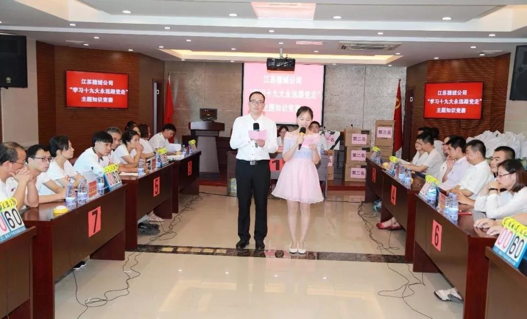 7月20日,江蘇捷誠開展了以“學習十九大,永遠跟黨走”為主題的宣傳貫徹黨的十九大精神知識競賽活動。公司領(lǐng)導班子成員,各黨支部黨員代表共79人參加活動。