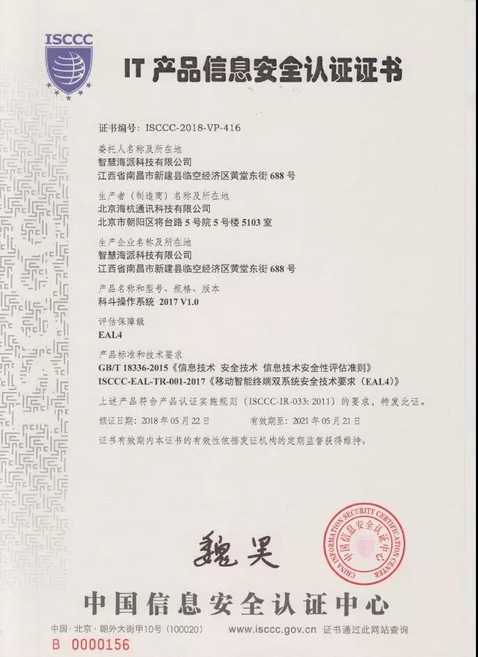 經(jīng)過多方歷時(shí)半年的共同努力,智慧海派科技有限公司送檢的科斗操作系統(tǒng)(Tadpole OS 2017/V1.0)通過了信息產(chǎn)業(yè)信息安全測評中心有關(guān)移動(dòng)智能終端雙系統(tǒng)的EAL4級認(rèn)證檢測,于2018年6月份順利獲得了中國網(wǎng)絡(luò)安全審查技術(shù)與認(rèn)證中心(原中國信息安全認(rèn)證中心)的EAL4級的信息安全認(rèn)證證書,這是中國網(wǎng)絡(luò)安全審查技術(shù)與認(rèn)證中心針對非智能卡類IT產(chǎn)品頒發(fā)的首張EAL高級別信息安全認(rèn)證證書。