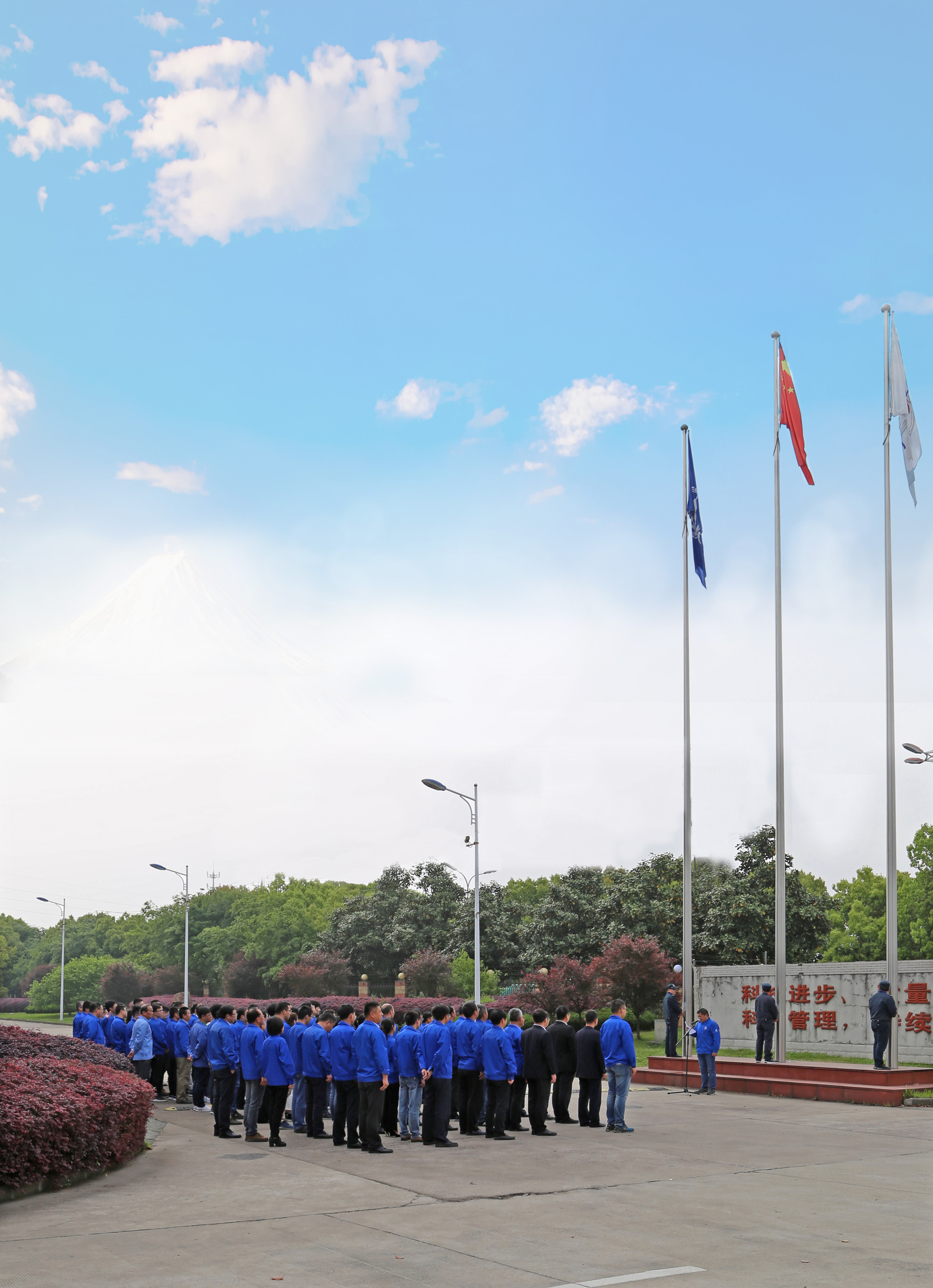 江蘇捷誠(chéng)領(lǐng)導(dǎo)班子、各車間部室負(fù)責(zé)人、各黨支部書記、工會(huì)和團(tuán)委代表、技術(shù)中心全體人員參加升旗儀式。當(dāng)雄壯有力的《義勇軍進(jìn)行曲》響徹整個(gè)廠區(qū),全體人員行注目禮,全場(chǎng)彌漫著一種莊嚴(yán)肅穆的氣息,鮮艷的五星紅旗冉冉升起,激發(fā)了全體干部職工不斷向上的斗志,點(diǎn)燃了大家強(qiáng)烈的愛國(guó)熱情。升旗儀式上,公司黨委號(hào)召全廠職工把愛國(guó)之志轉(zhuǎn)化為報(bào)效祖國(guó)的實(shí)際行動(dòng),為航天事業(yè)發(fā)展而奮斗。