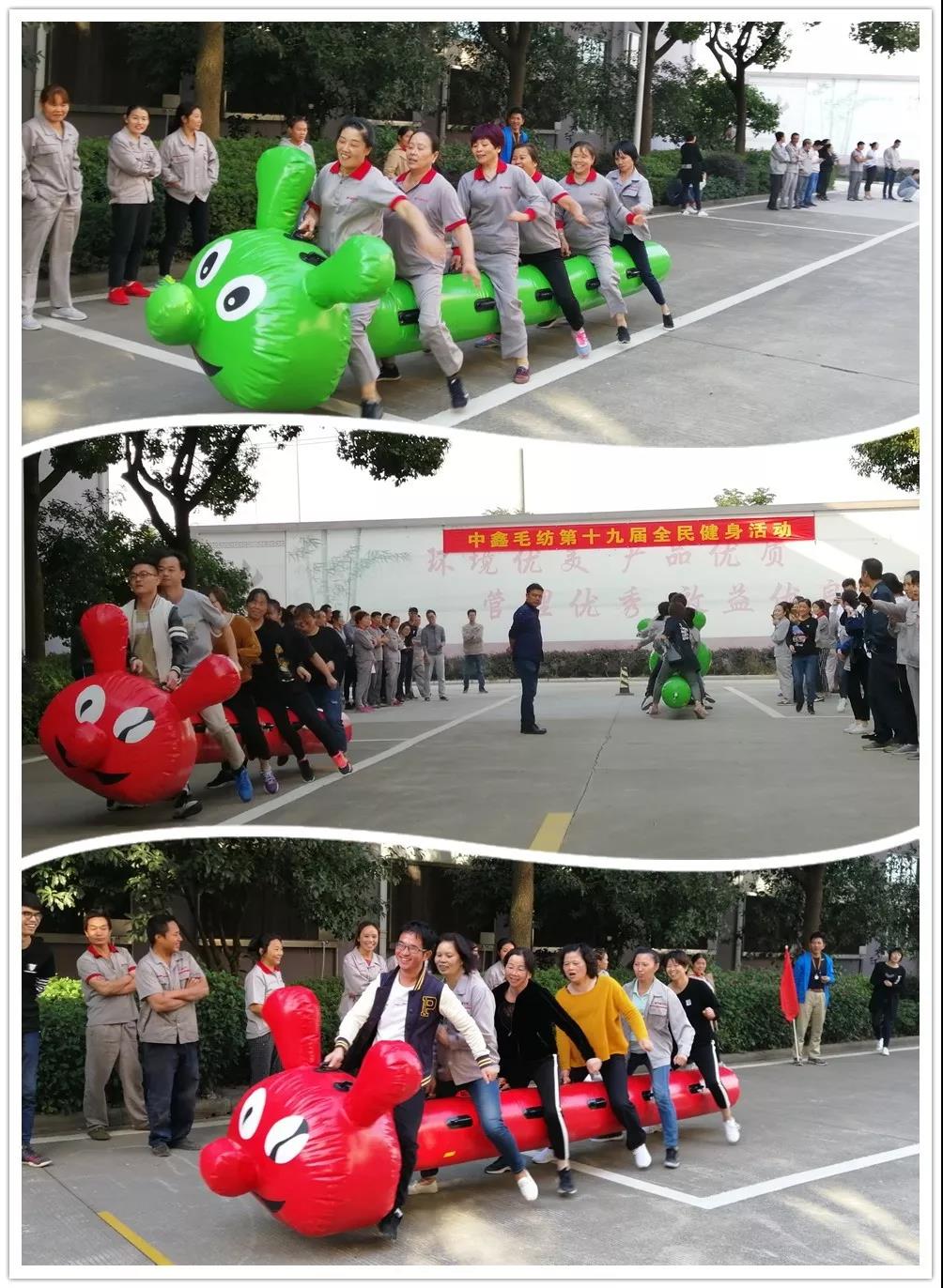 比賽項目除了傳統的拔河、集體跳繩外,增加了趣味與團隊精神集一身的毛毛蟲競賽。參賽者充分發揮了運動員的團隊競技精神,為集體榮譽賽出了水平和風采。拔河比賽中運動員奮力拼搏,啦啦隊加油聲綿綿不斷;集體跳繩時運動員們自如穿梭,觀眾們齊聲念數;毛毛蟲競賽中運動員們口喊“一二、一二”,雙腳隨著節奏左右搖擺,觀眾們更是歡笑聲連綿不斷。最終,經過激烈的比賽,染色組擊敗衛冕冠軍粗紡組獲得拔河比賽冠軍,中潤組摘取跳繩比賽桂冠,營銷組憑借長腿優勢輕松拿到毛毛蟲競賽冠軍。