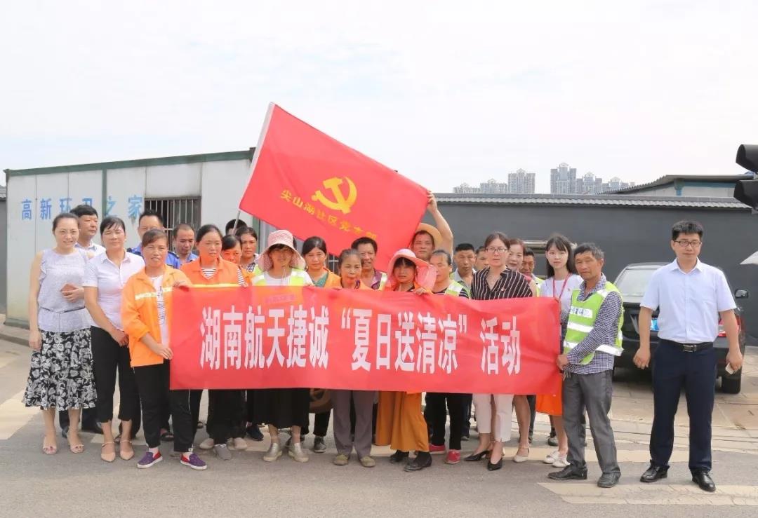 入伏以來,熱浪滾滾,而環(huán)衛(wèi)工人們依然頂著酷暑奮戰(zhàn)在一線,為創(chuàng)造美麗的“星城”貢獻著自己的一份力量。為了給這群辛勤的勞動者們送上一份“清涼”,實現(xiàn)炎炎夏日里的“微心愿”,8月1日,江蘇捷誠湖南子公司黨支部聯(lián)合尖山湖社區(qū)黨支部,來到高新區(qū)尖山湖社區(qū)的環(huán)衛(wèi)之家進行探望慰問。支部的黨員們?yōu)榄h(huán)衛(wèi)工人們送上綠豆、藿香正氣水、板藍根等解暑物資,同時還帶去了米和油等生活必需品,提醒工人們在高溫天氣要做好防暑降溫措施,并對他們用辛勤汗水換來的干凈整潔的社區(qū)面貌表示由衷的感謝。