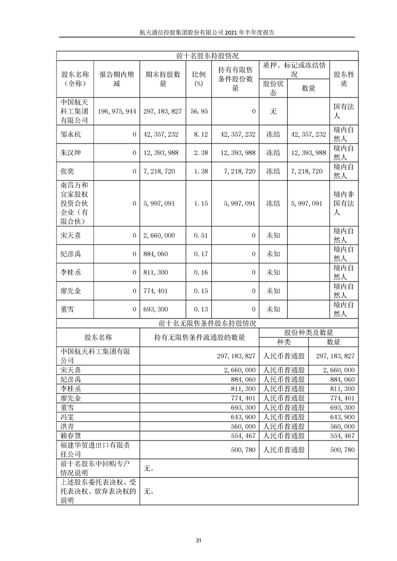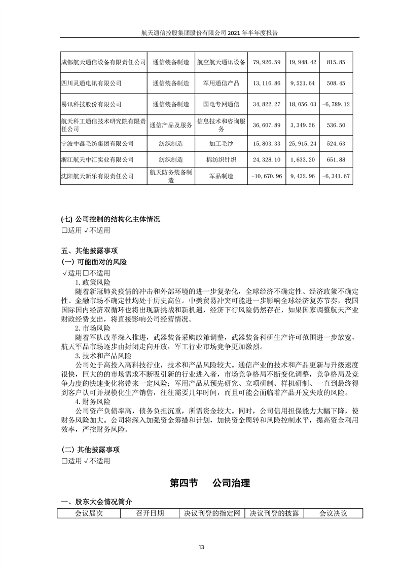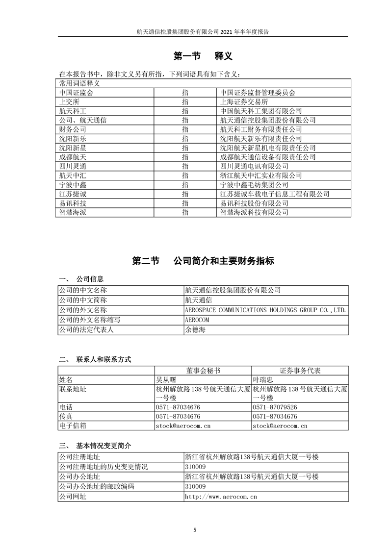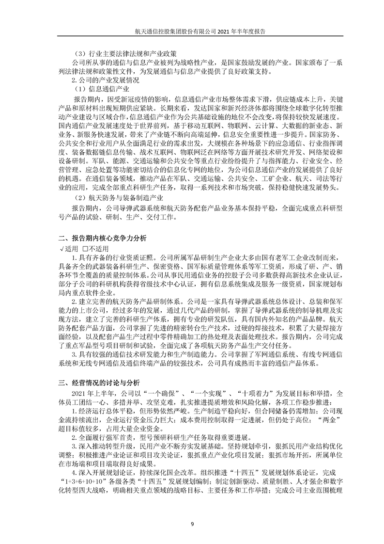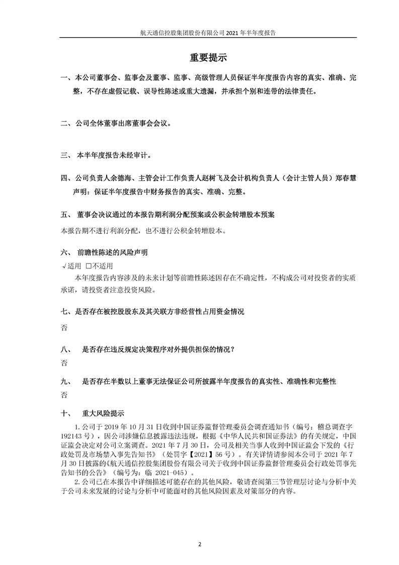 航天通信控股集團(tuán)股份有限公司2021年半年度報(bào)告