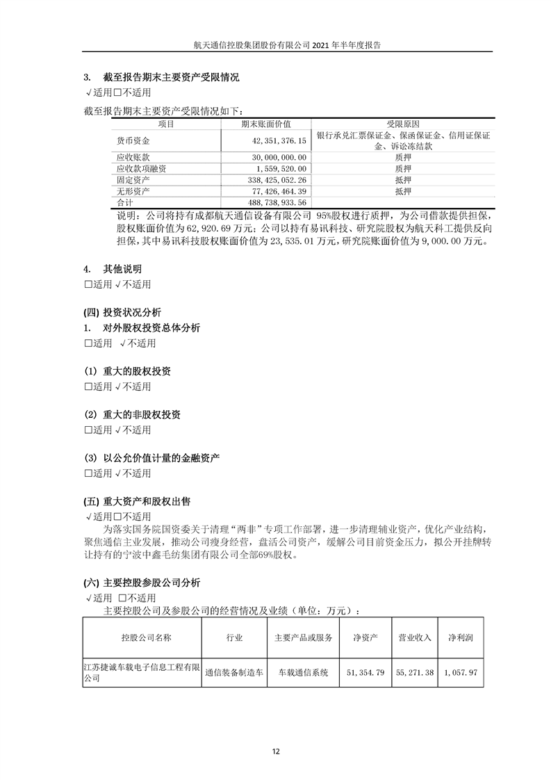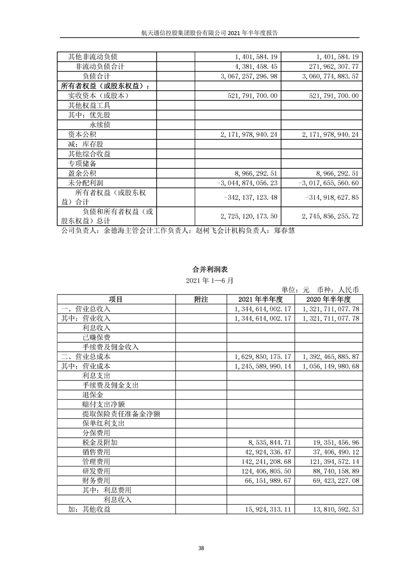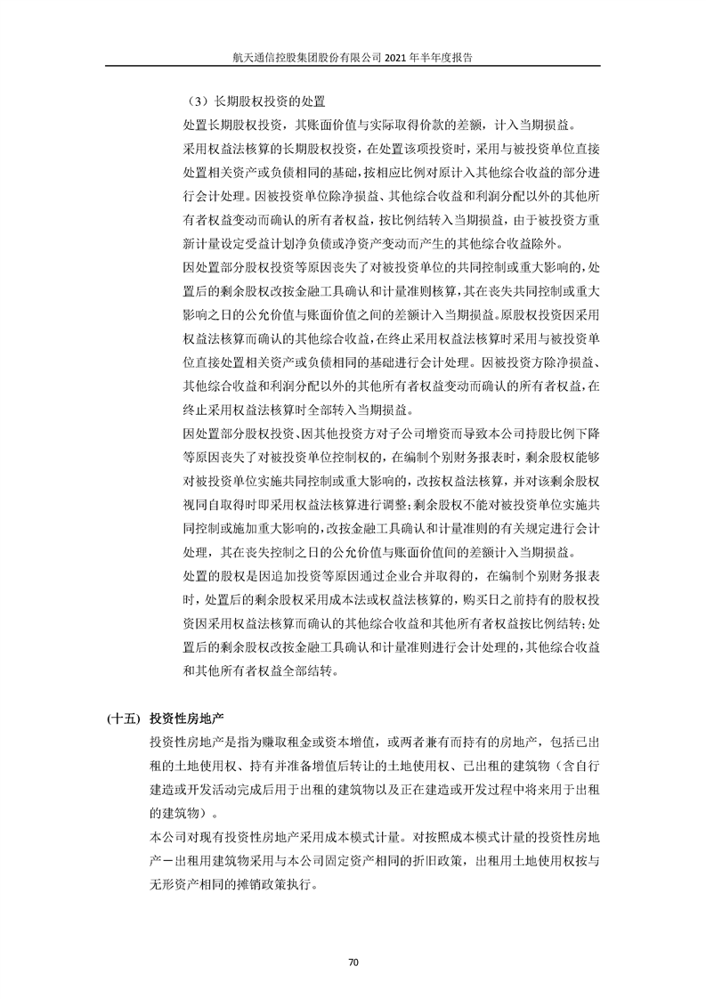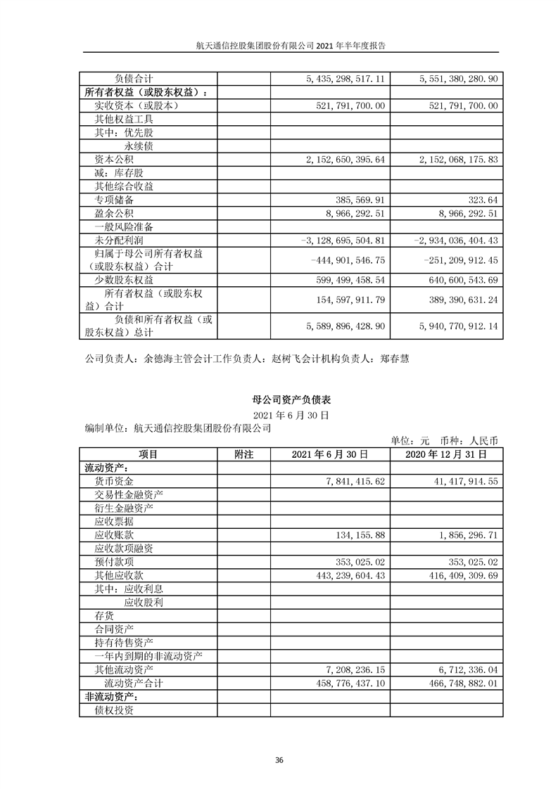航天通信控股集團(tuán)股份有限公司2021年半年度報(bào)告