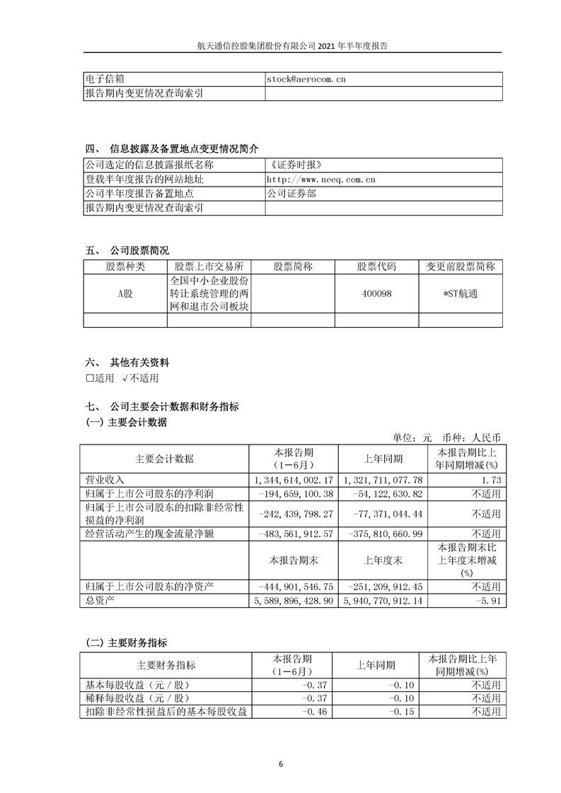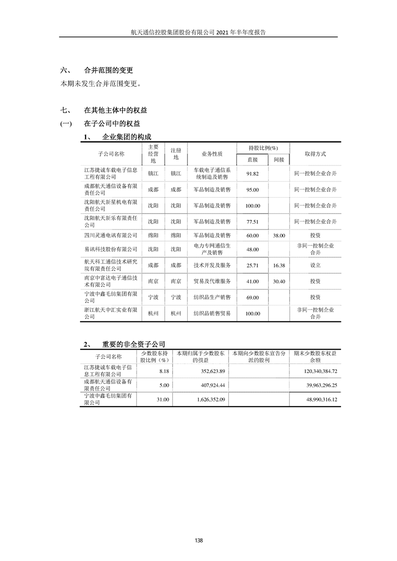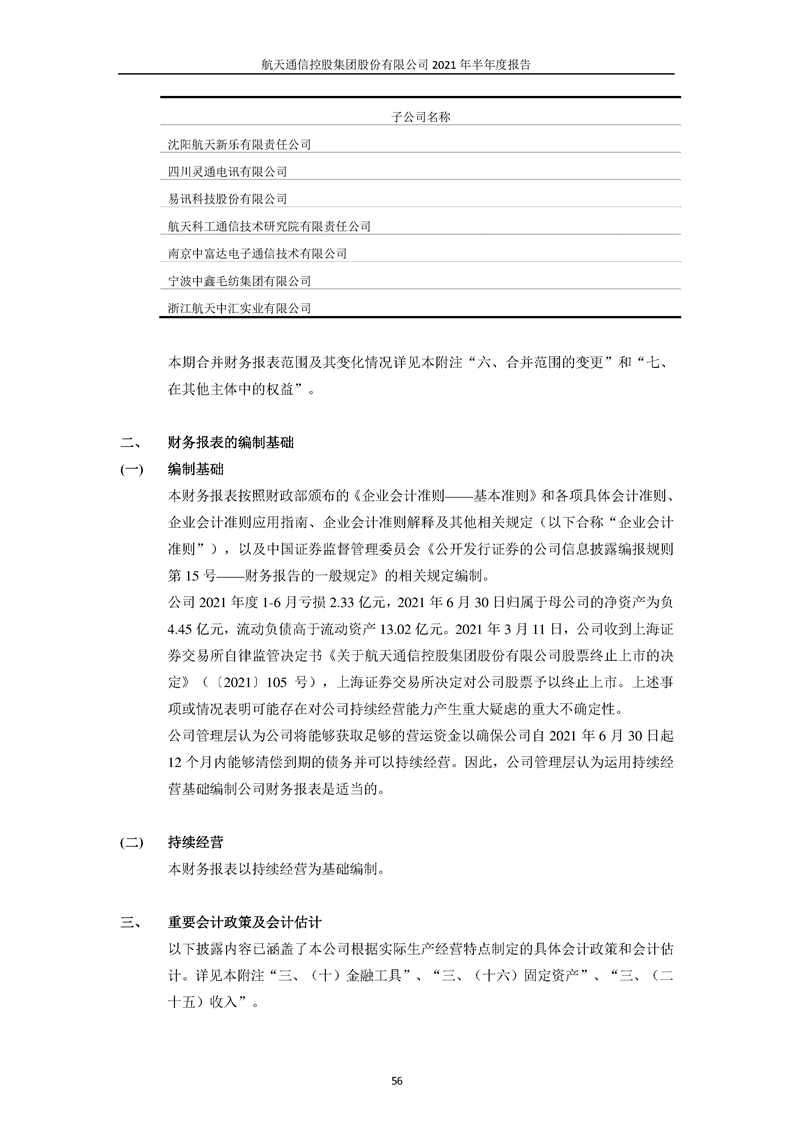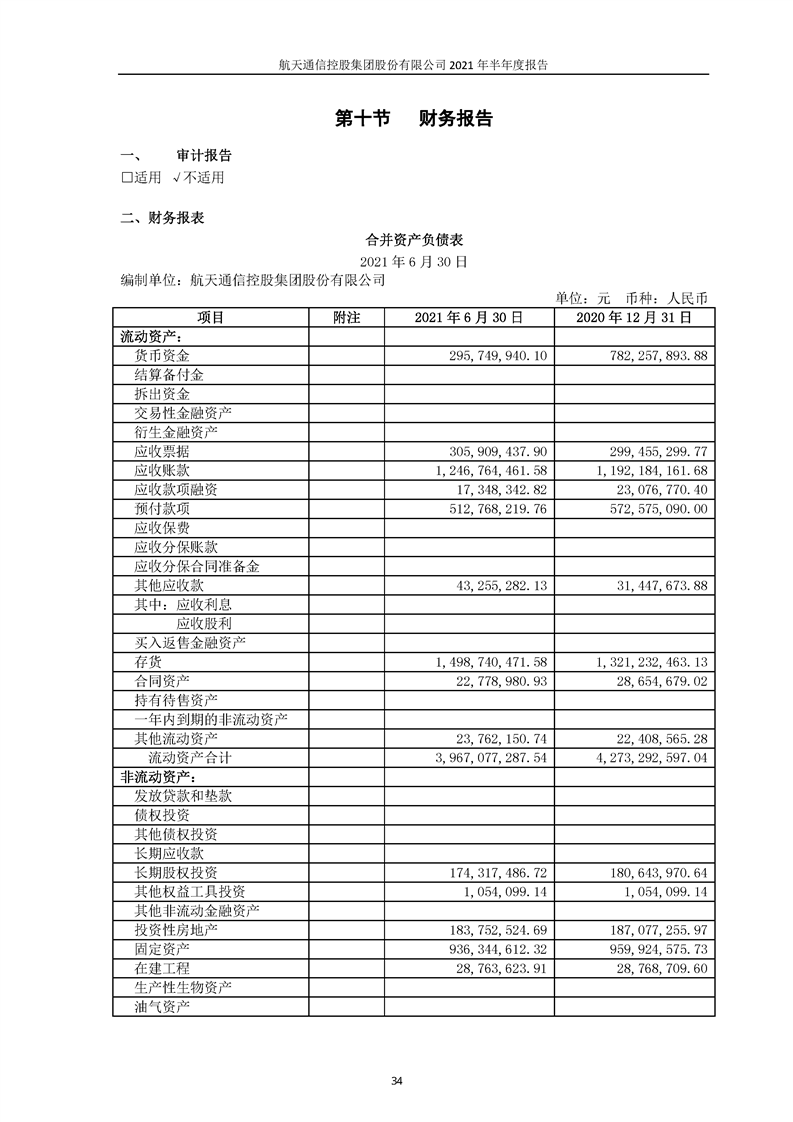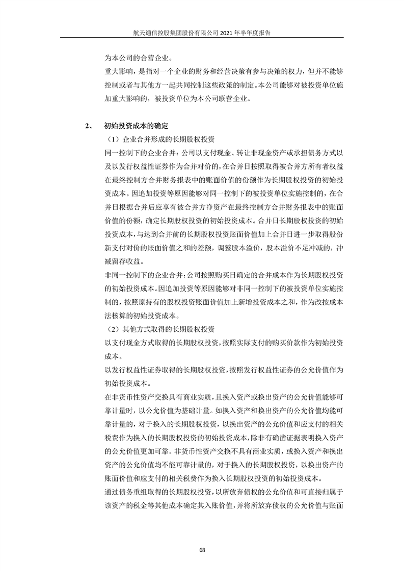 航天通信控股集團(tuán)股份有限公司2021年半年度報(bào)告